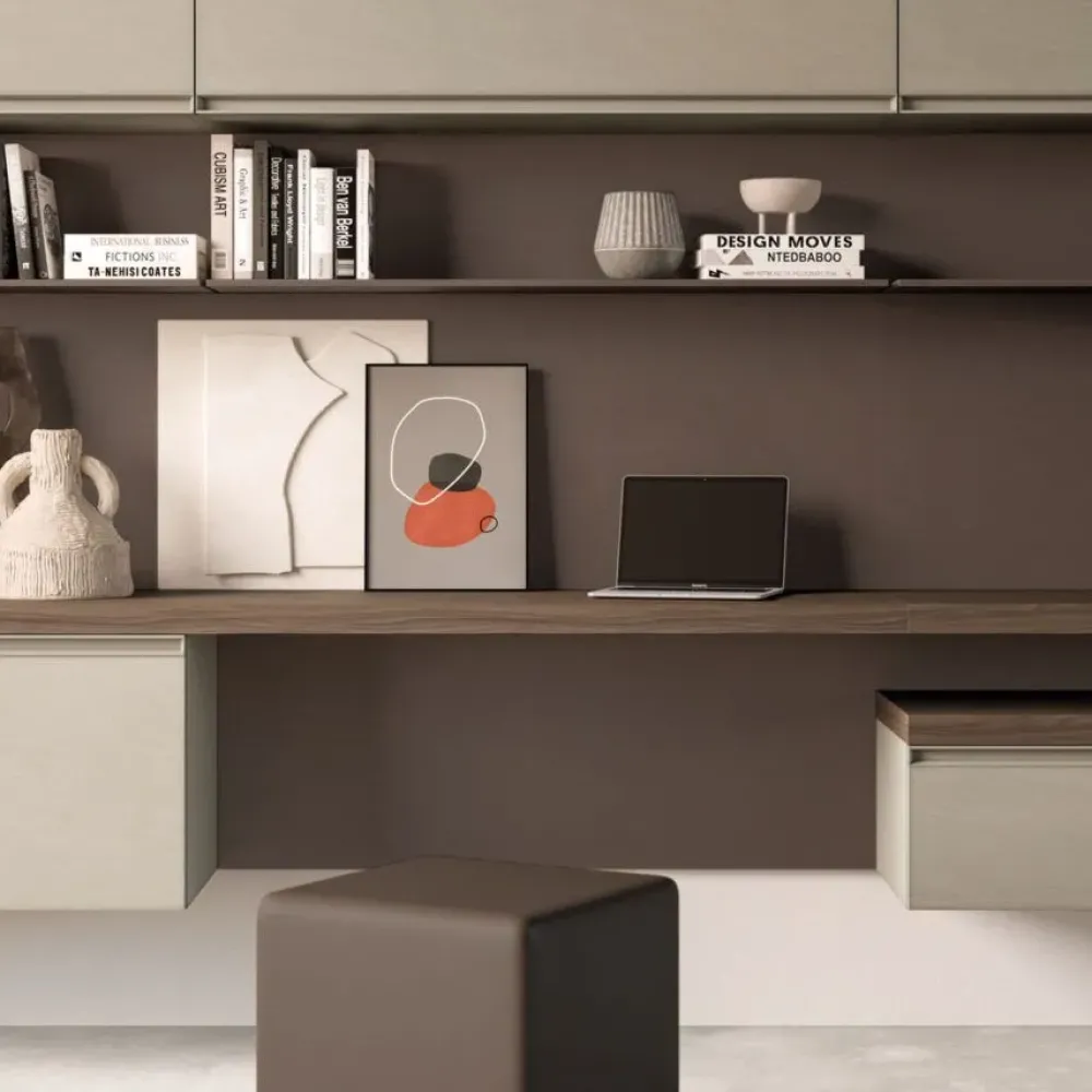 Questa multifunzionale e ampio composizione porta con sé tutta la praticità di un mobile sospeso, capace di arredare la zona giorno perfezionandone gli spazi.