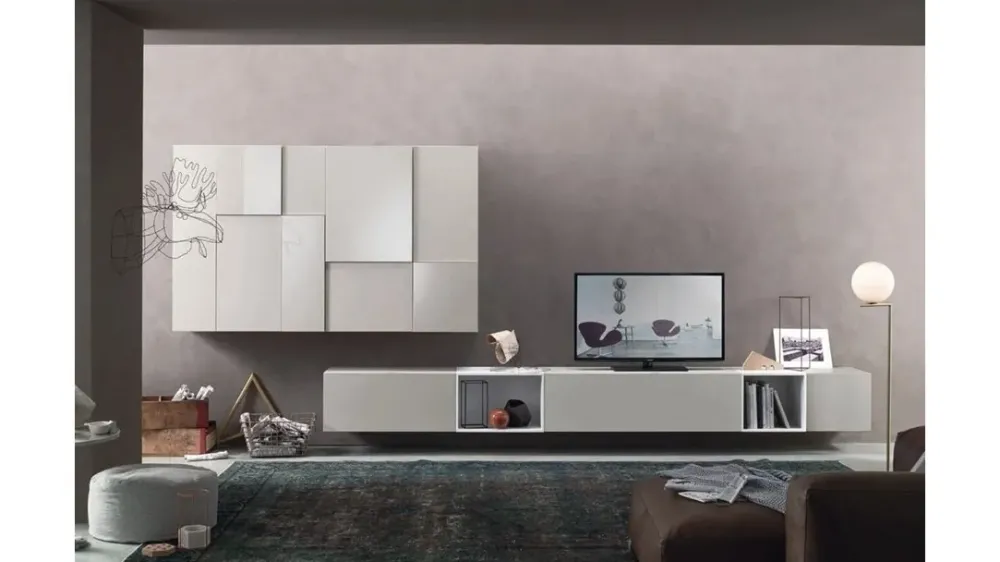 Per il prezzo della consegna di questa proposta in offerta completa di tutto: trasporto escluso. I mobili e oggetti accessori del soggiorno non devono mai risultare ingombranti, quindi è tanto importante valutare anche le misure della composizione scelta: il modello mostrato in foto ha una larghezza che va da 401 cm in su. Se cerchi una composizione completa per il soggiorno e sei un amante delle finiture in laccato opaco, prediligi il modello Lampo : ti sta aspettando con forte sconto. Arreda il tuo soggiorno con una tra le nostre composizioni di mobili e oggetti accessori senza maniglia: il soggiorno completo Lampo ti sta aspettando a prezzo scontato. Questo soggiorno completo sarà la soluzione ideale per arricchire un locale in stile design, rendendolo dinamico e operativo nonchè bello da vedere. Questa plurifunzionale e spazioso composizione rappresenta tutta la funzionalità di un mobile sospeso, capace di arredare il soggiorno ottimizzandone gli spazi.