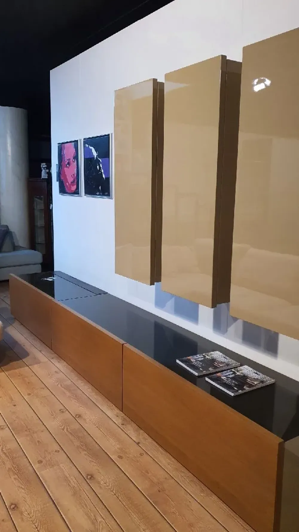 - Forme decise e materiali durevoli contraddistinguono tutti i soggiorni completi del noto e conosciuto brand composti da mobili in laccato lucido, come la composizione Passport today nella fotografia.