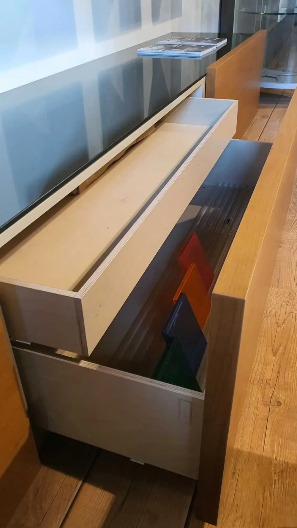 1 base cestone frontale impiallacciato noce con cassetto interno e portacd