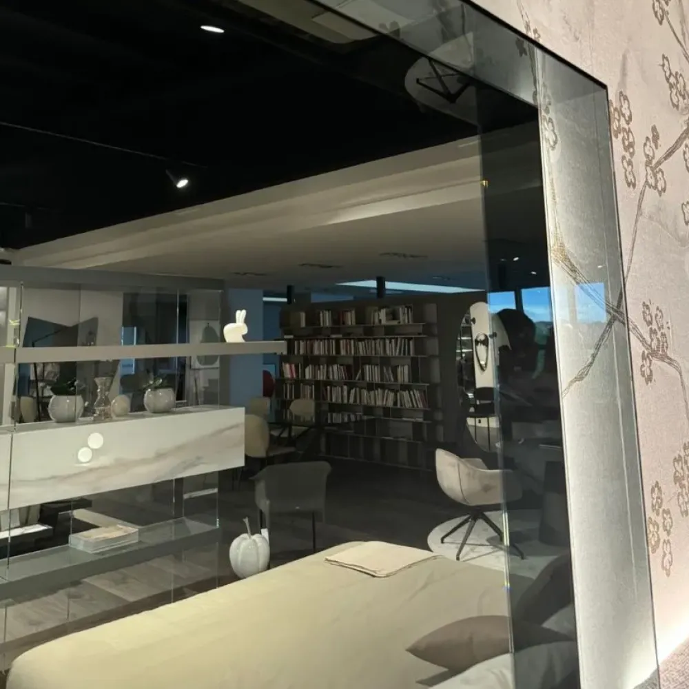 Se desideri ricreare peculiari atmosfere in case con uno specchio moderna, il modello Glass mirror presente in foto fa per te.