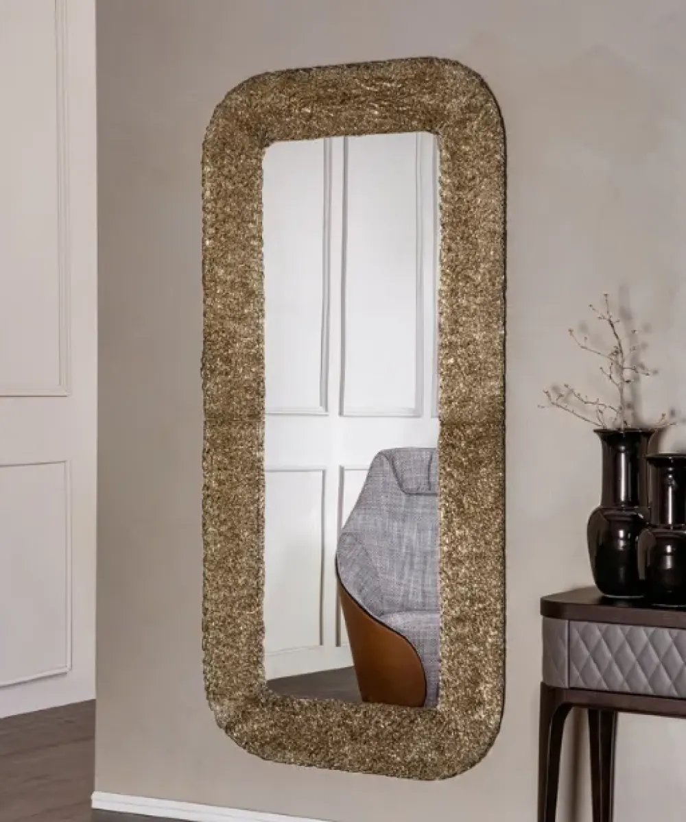 Una colata di vetro fuso che veste di eleganza uno specchio quadrato o rettangolare pensati per dare un tocco di lusso alla tua casa.