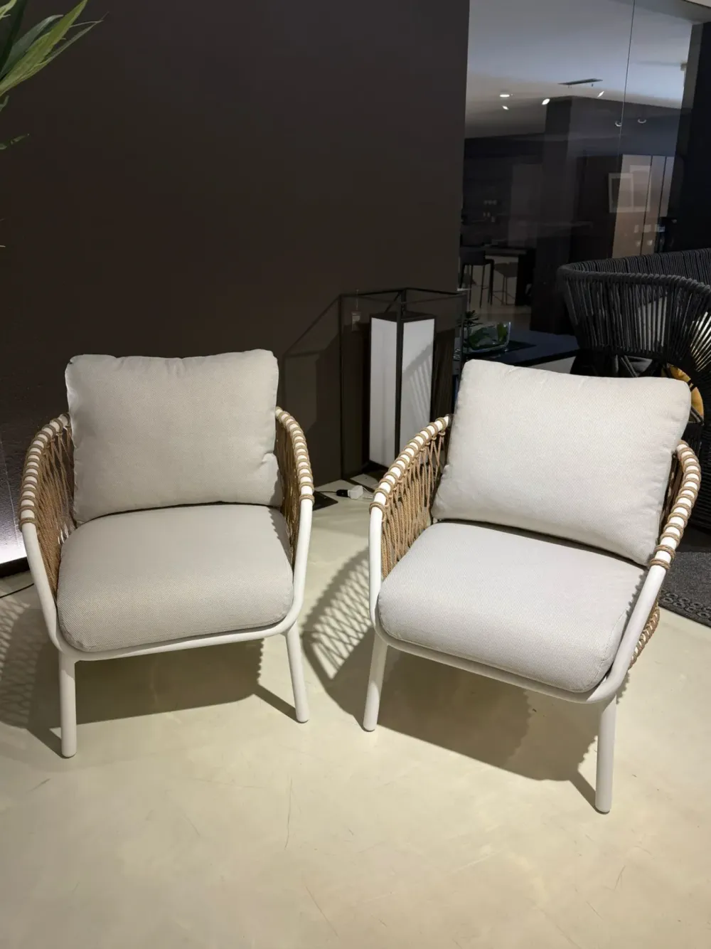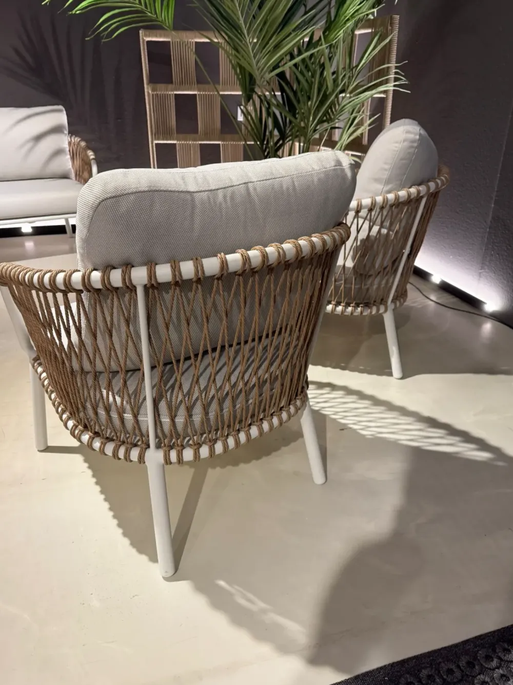 Il Set divano due posti, poltrone e tavolino Mod. Abel di Talenti rappresenta l’essenza del design contemporaneo, unendo eleganza e funzionalità per trasformare il tuo spazio esterno in un’oasi di stile. La struttura in alluminio, leggera ma resistente, è arricchita da un intreccio di corda imbottita che avvolge lo schienale, creando un effetto visivo dinamico e accattivante. Questo set non è solo un complemento d’arredo, ma una vera esperienza di comfort grazie alla sua generosa cuscinatura dalle linee morbide.