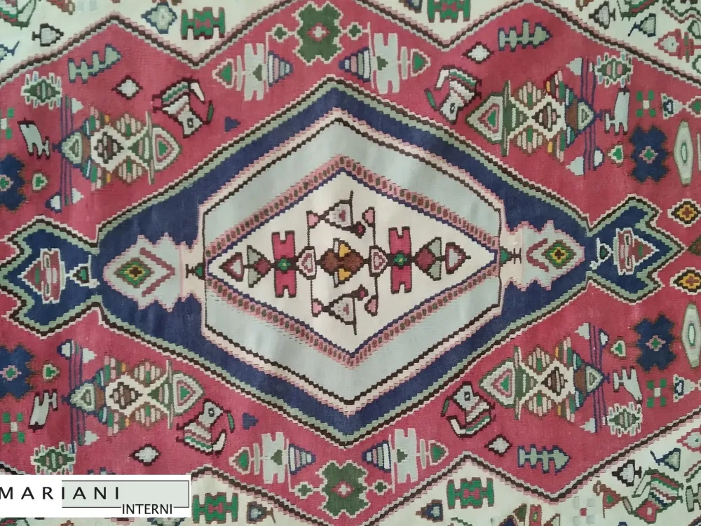 Tappeto decorato con disegni astratti con frange, in buone condizioni