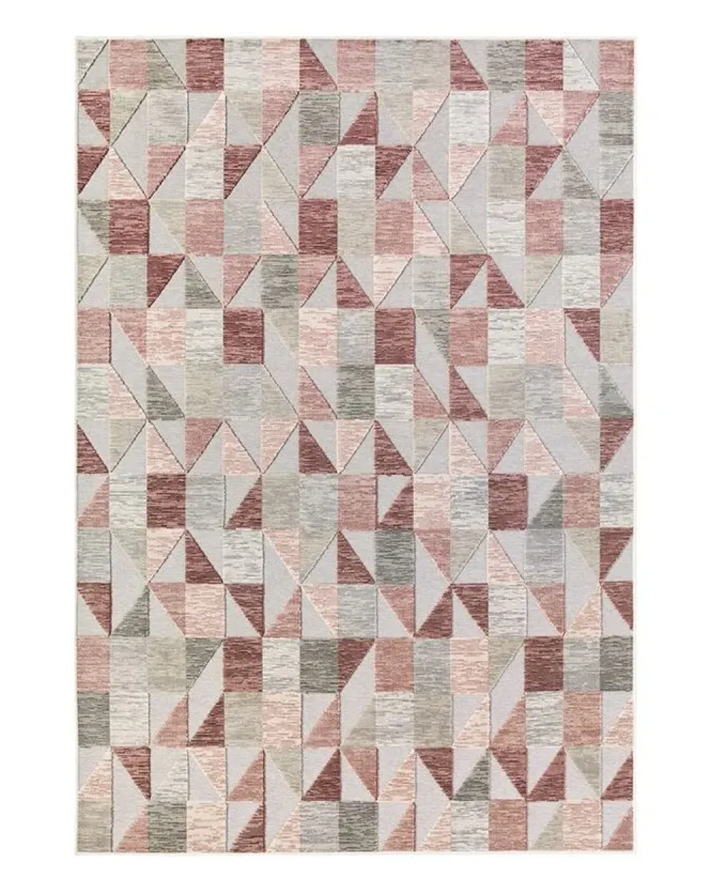 Tappeto geometrico dal design accativante e moderno, Genova 38483/6898/91 propone una base grigio chiaro su cui spiccano triangoli e rettangoli di varie gradazioni di rosa e grigi. L’effetto è dinamico e giovane. I tappeti Genova sono ideali per chi non sia amante della felpa alta ma che comunque sia in cerca di morbidezza.