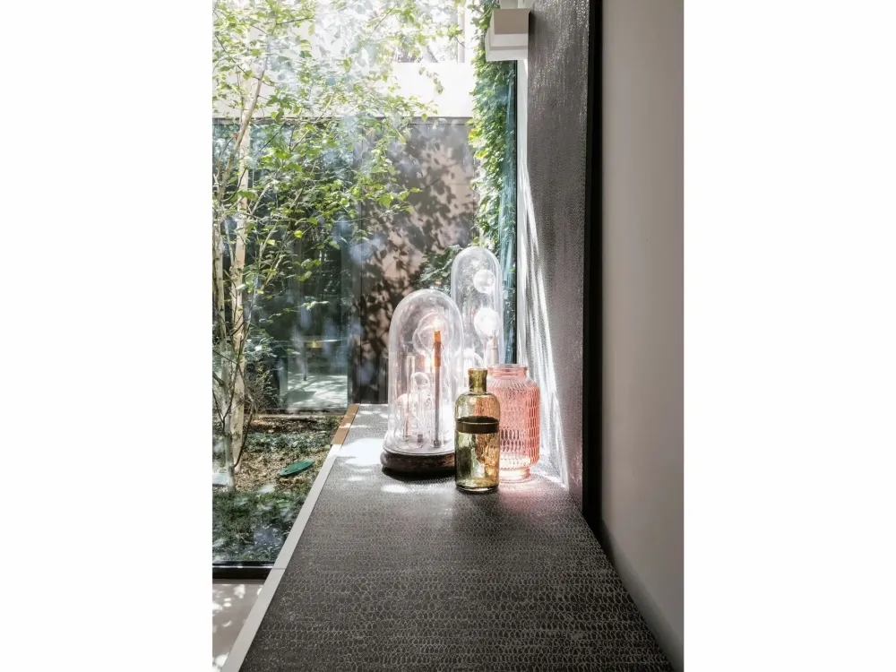 I cassetti hanno scorrevoli che garantiscono l’estrazione totale e il pratico sistema push & pull permette di non avere maniglie a vista e dunque avere un design più pulito. La madia è completata da un comodo vano giorno realizzato in metallo verniciato in tinta con le gambe posizionato a destra della versione da 210 cm e a sinistra in quella da 166 cm.