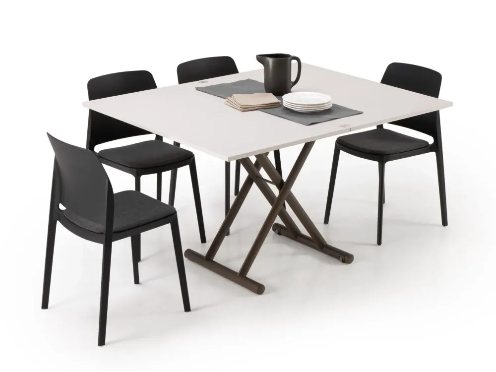 Bento Outlet è un tavolino trasformabile ad altezza regolabile, dotato di un piano a libro che può essere raddoppiato in lunghezza, permettendone l’utilizzo come tavolo da pranzo per fino a 6 persone.