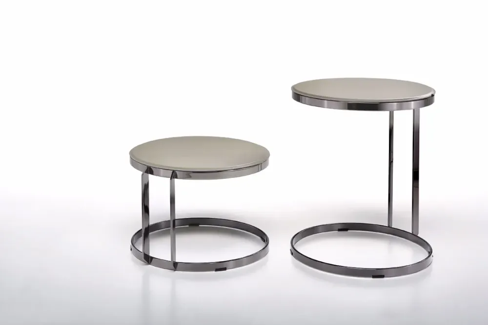 Il coffe table Don è un prodotto di manifattura artigianale 100% made in Italy che garantisce un’eccellente qualità e un design raffinato e contemporaneo. Presenta una struttura in acciaio con finitura metallica tinta grafite e un piano in finitura cuoio color tortora chiaro. In offerta la versione con altezza cm 35 e diametro cm 50- E’ possibile abbinare il tavolino con altezza cm 60 e stesso diametro cm 50 ad euro 448,00-