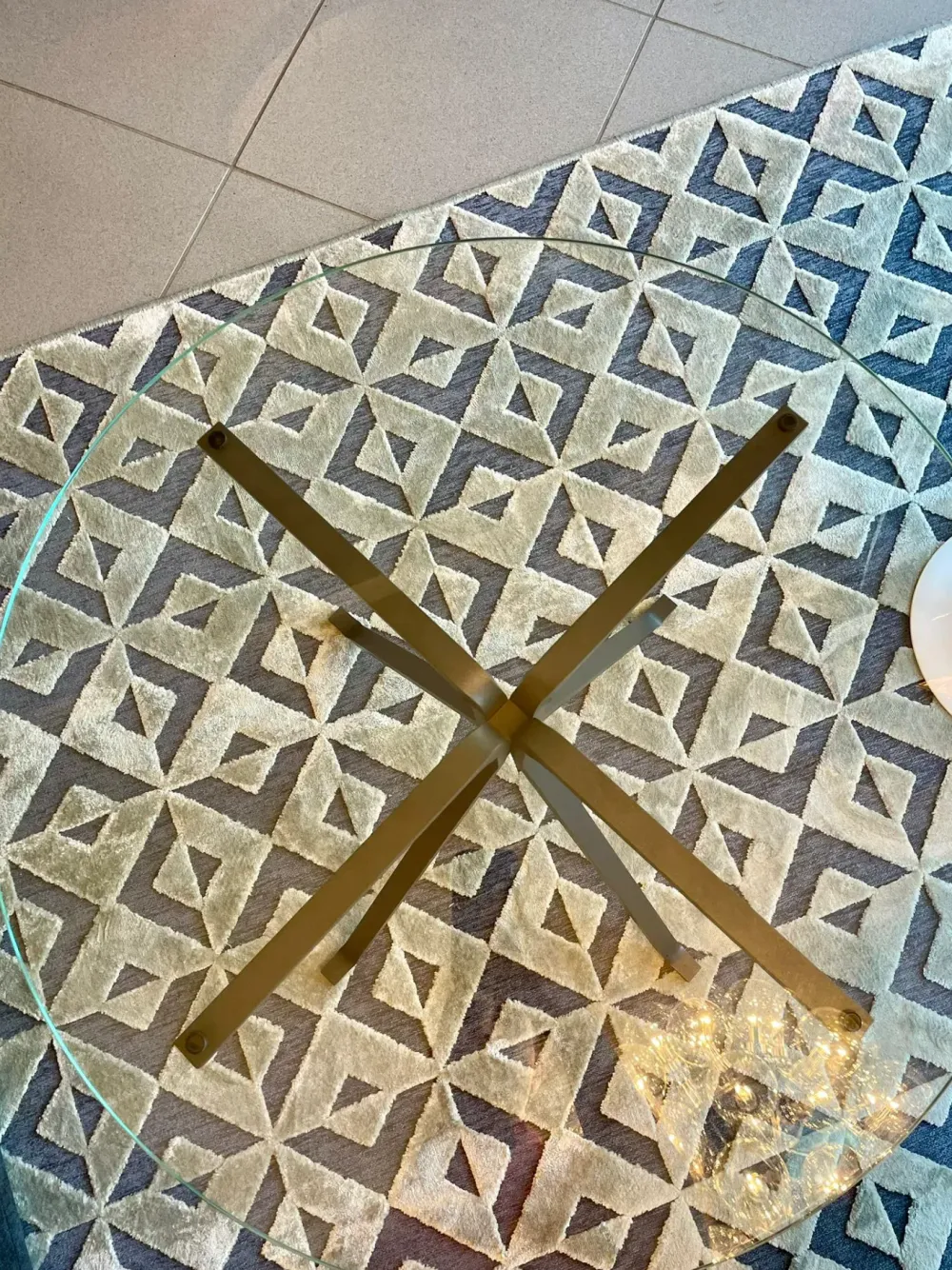 Tavolino. Struttura in profilati di acciaio verniciati di colore nero antracite. Piano circolare o quadrato in vetro temperato sp. 8 mm. Uso solo interno.