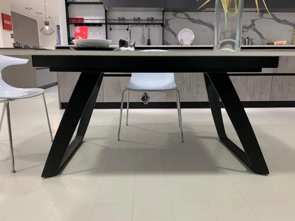 Tavolo Barret con struttura in metallo nero, piano in HPL finto marmo, n.2 allunghe interne da cm 50 sempre in HPL in tinta
