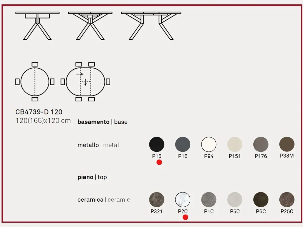 Specifiche tecniche del tavolo Giove cb4739-d 120