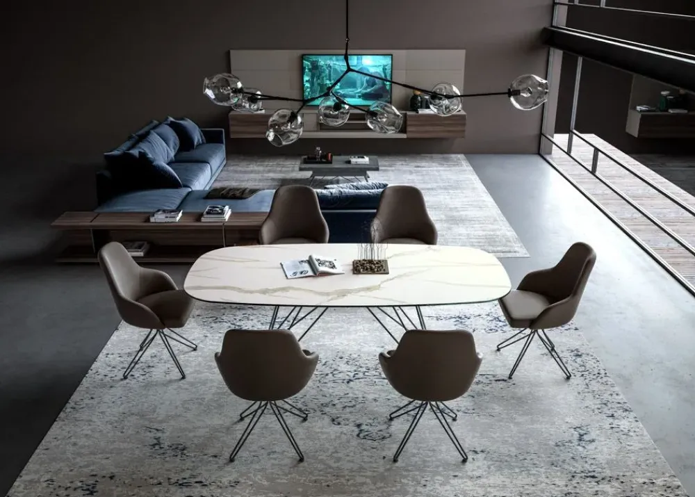 - Una struttura a quattro gambe ultima la resa estetica del tavolo Ellittico qui presente, che si confermerà in tal modo presenza caratterizzante del soggiorno o della zona cucina dove viene collocato, grazie alla sua figura di grande personalità.