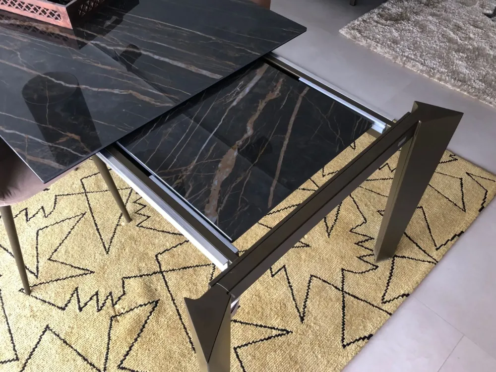 Design unico ed un risultato estetico di grande personalità caratterizzano la struttura a quattro gambe del tavolo qui visibile: complessivamente, il valore estetico del modello Cruz Bontempi non ti deluderà.