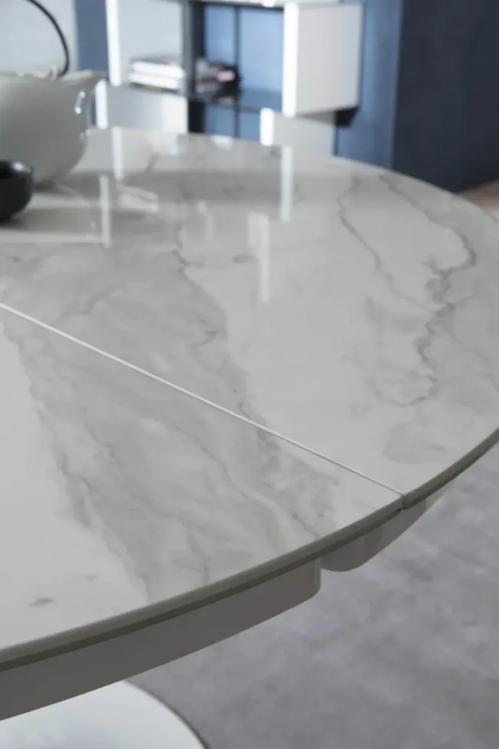 - Una struttura con basamento centrale ultima l’estetica del tavolo Rotondo qui disponibile, che si confermerà in tal modo protagonista del living o della cucina dove è collocato, grazie alla sua figura di gran classe.
