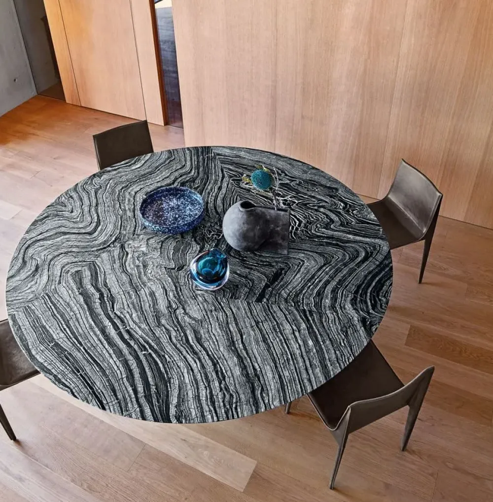 Con una variante di prezzo il piano è disponibile: in marmo Emperador o marmo “Niveo white” con vassoio girevole “Lazy Susan” oppure in marmo “Moon grey”.