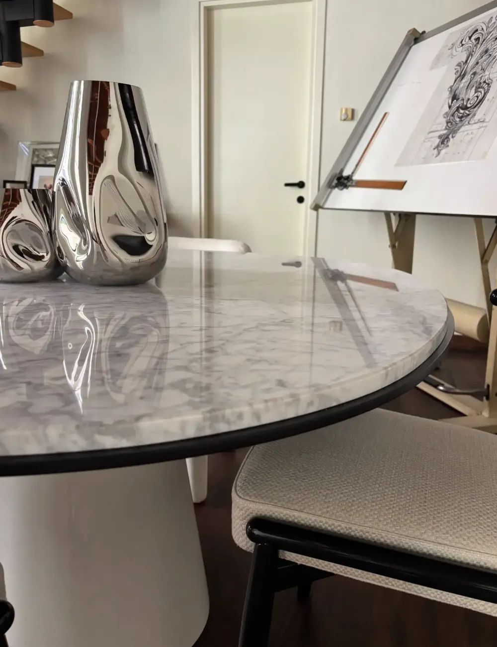 Durante la scelta dei tavoli da posizionare in casa, è consigliabile fare molta attenzione altresì ai materiali con cui sono stati fatti, poiché hanno disparate qualità pratiche ed estetiche a seconda del tipo di piano: il tavolo Owen qui visibile ne comprende uno costruito in marmo di grande effetto visivo, su cui potrai appoggiare oggettistica d’uso quotidiano nonchè prettamente decorativo.