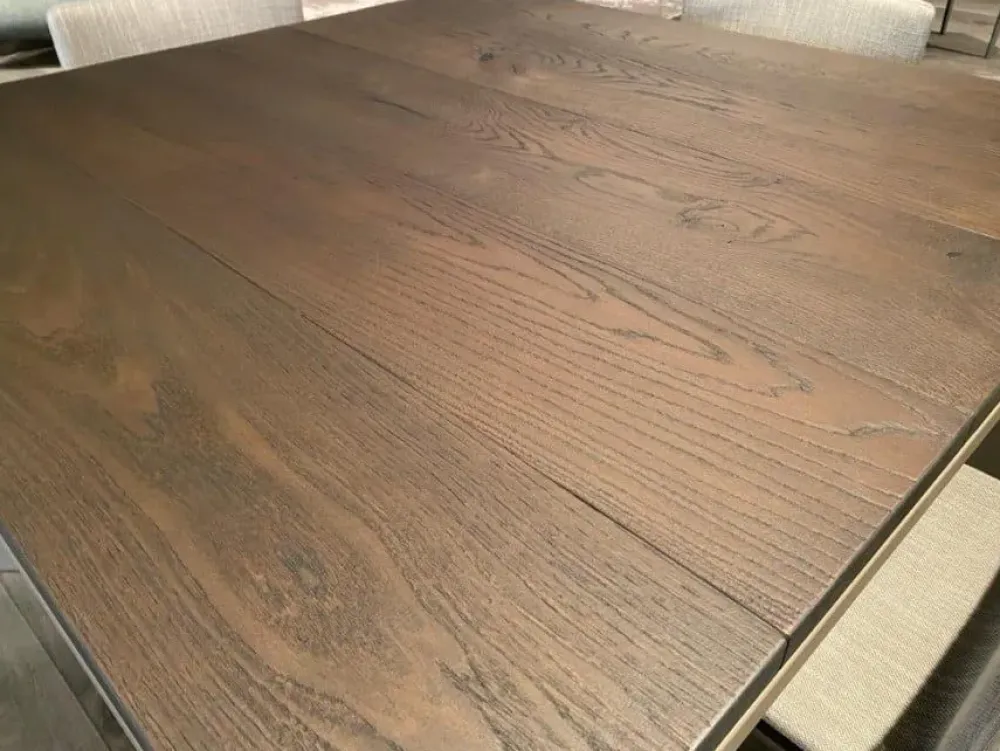 Per il nostro showroom abbiamo scelto Loto con struttura acciaio verniciato titanio, piano Wildwood grigio e prolunghe laccate fango. Il prezzo è riferito al modello esposto in showroom.