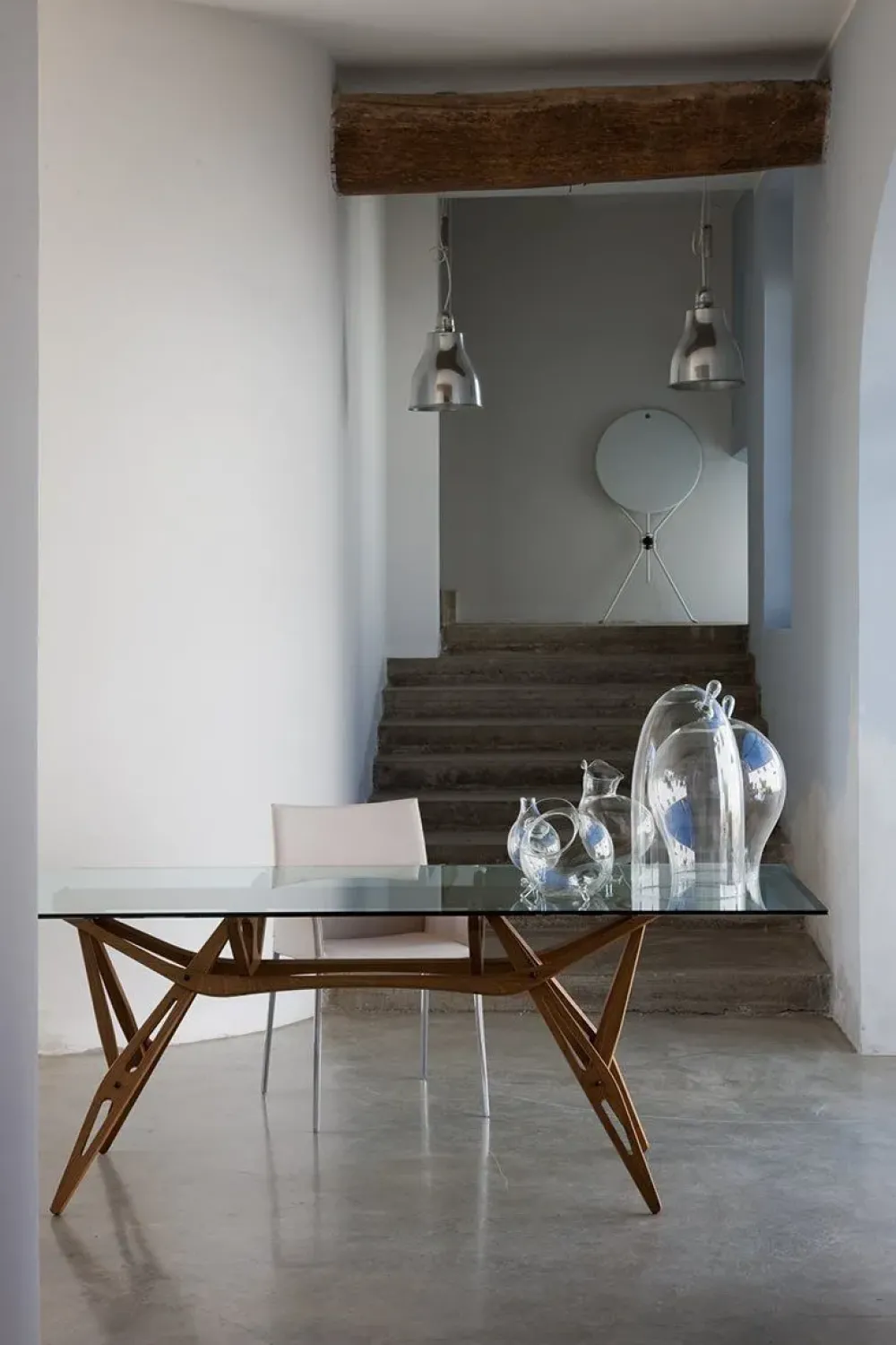Tavolo Reale di Zanotta Omaggio a Carlo Mollino, anno di progettazione 1948 Reale è un tavolo elegante e raffinato, il piano è trattato con una finitura protettiva antimacchia che ne assicura la duratura. Un vero e proprio capolavoro composto da un’ossatura compatta valorizzata da un piano di cristallo. Il prezzo sopra indicato si riferisce al tavolo, modello Reale, nella versione con piano in cristallo bisellato. Struttura in rovere tinto noce Canaletto; verniciatura con finitura a cera. Misura: L 200 x P 90 x H 72 Reale è disponibile anche in diverse misure, con struttura in legno massello di rovere naturale oppure tinto nero, con piano in cristallo non bisellato e in marmo Emperador. Spedizione esclusa dal prezzo sopra indicato. Per qualsiasi necessità e/o chiarimenti vi invitiamo a contattarci direttamente.