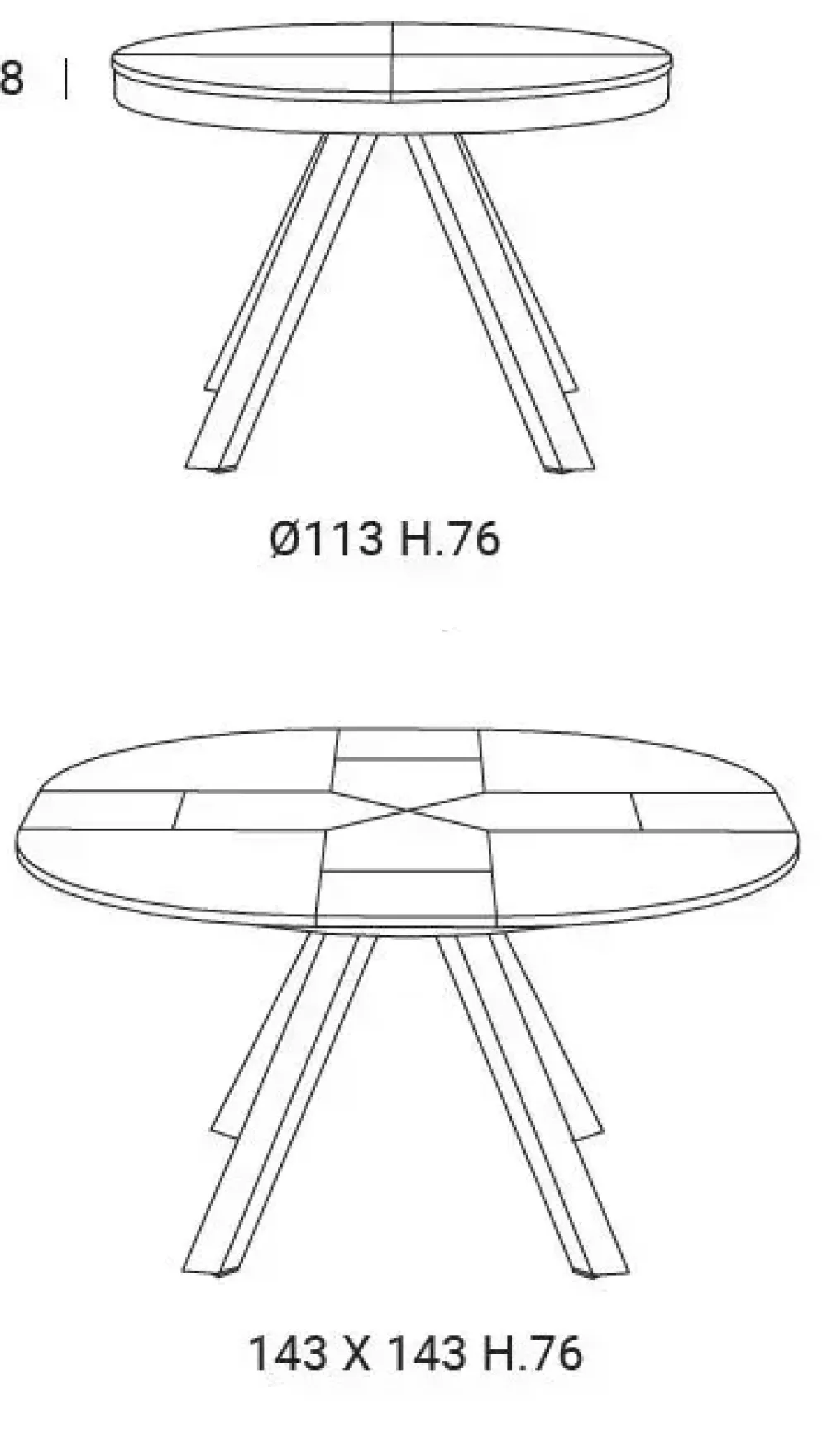 Misure diamentro 113/143 – h 76 cm (8 persone)