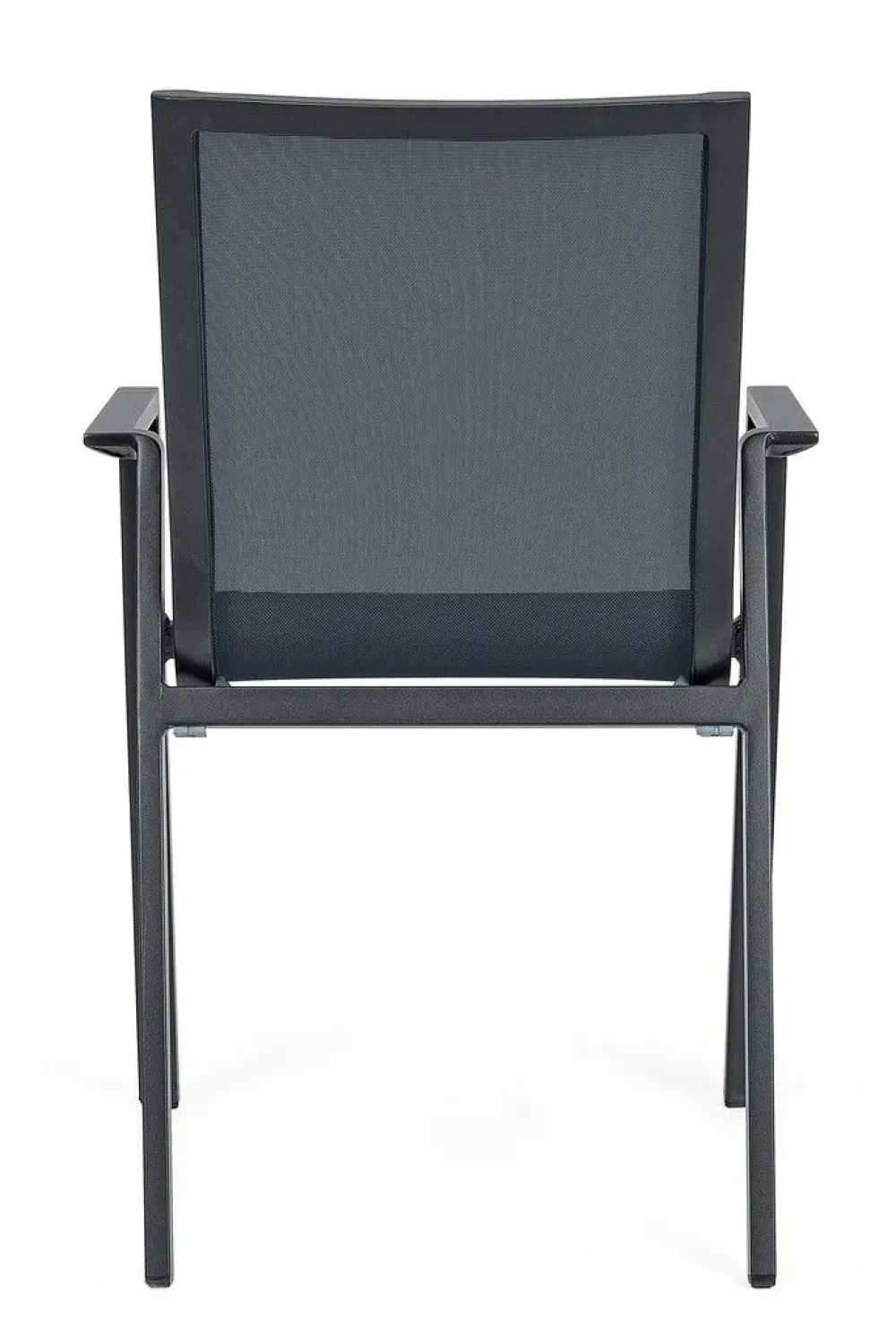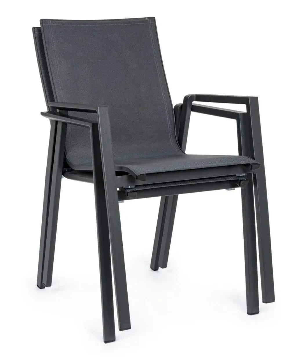 STRUTTURA IN ALLUMINIO VERNICIATA A POLVERE (POLIESTERE). RIVESTIMENTO IN TEXTILENE 1X1. IMPILABILE.