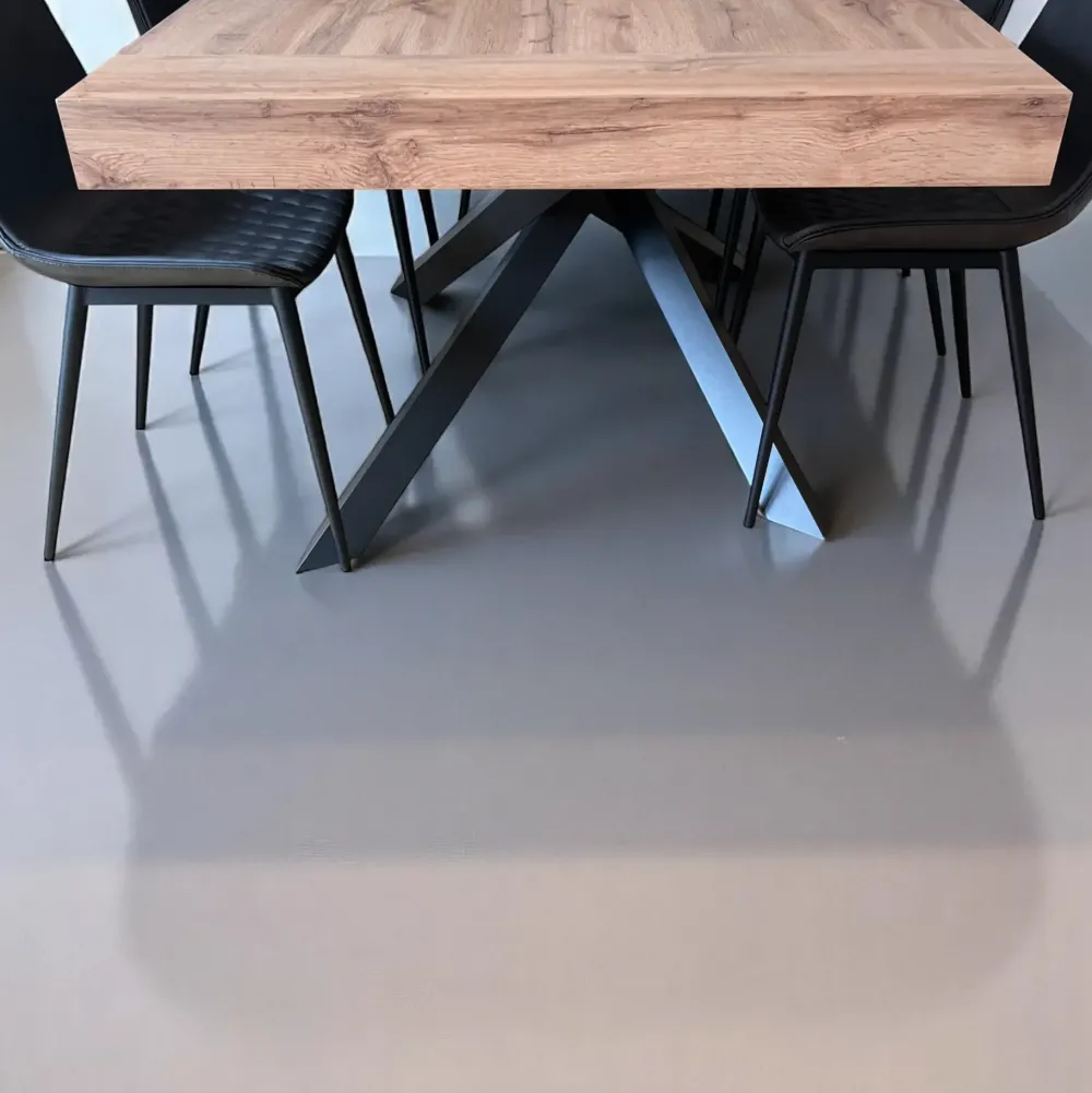 . PRESENTA IL SUO TAVOLO MOD SHANGAI. BASAMENTO IN METALLO NERO CENTRALE INTRECCIATO E PIANO ALLUNGABILE IN NOBILITATO FINITURA QUERCIA PER DARE UN TOCCO UNICO ALLA VOSTRA SALA DA PRANZO.