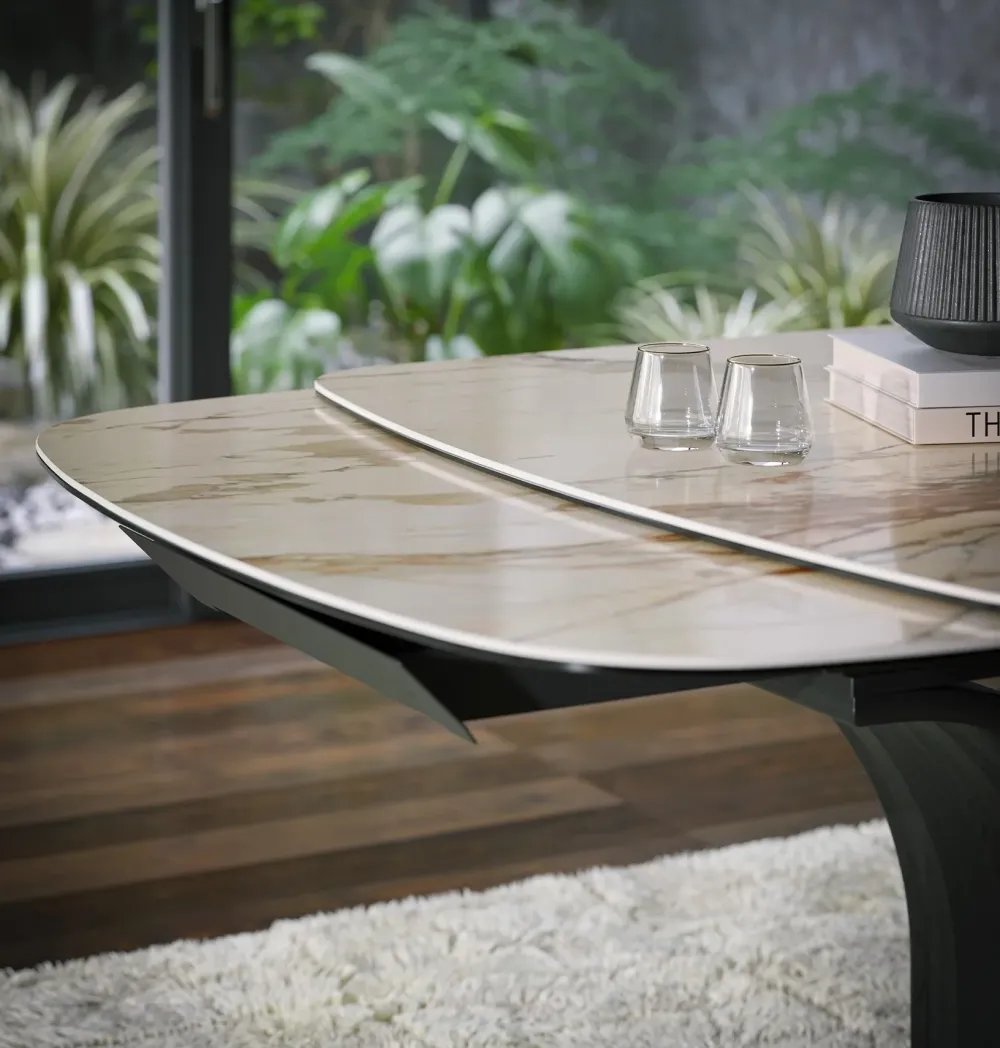 Linee ben studiate ed una certa continuità stilistica sono imprescindibili in un modello di tavolo di tutto rispetto: questo modello Arco Tonin Casa è sagomato, in grado di esaltare lo stile dei locali caratterizzandoli; che sia rettangolare, rotondo, ellittico o quadrato, il tavolo deve congiungere praticità e design per rispondere a ogni tua necessità di spazio secondo il tuo gusto personale. I locali interni di ogni tipo occorre che siano organizzati con una certa logica, cosicché i mobili organizzino al meglio lo spazio senza risultare ingombranti: per questo motivo la scelta diventa spesso faticosa e si corre il rischio di rinunciare all’aspetto estetico piuttosto che pratico; noi sappiamo bene che per te è davvero importante avere a disposizione una vasta gamma di molteplici tipologie di tavoli, tra cui pure il modello allungabile qui disponibile, adeguato per rispondere alle aspettative di spazio e stile di ciascuno. I pezzi di arredo non devono mai risultare d’ingombro, prima di tutto per quanto concerne lo spazio che occupano secondo la disposizione dei locali; per questo motivo è tanto importante valutare attentamente anche le dimensioni del tuo tavolo: il modello Allungabile Arco mostrato in foto ha una lunghezza che va da 191 a 220 cm ed è dunque ideale per un ambiente di molteplici volumetrie. Per il tavolo Tonin Casa Allungabile Arco, è disponibile un piano di qualità elevata realizzato in ceramica, adeguato per completare dal punto di vista dell’estetica ambienti di qualsiasi stile garantendoti anche di avere una superficie di appoggio multifunzionale e sempre disponibile; questo materiale di gran classe sarà in grado di arricchire il tuo soggiorno o la tua zona cucina secondo il tuo gusto personale. Che tu abbia intenzione di collocare il tavolo Sagomato Arco nel soggiorno o nella zona cucina, esso sarà presenza caratterizzante dell’ambiente: per merito delle forme decise della sua struttura con basamento centrale, arricchirai gli ambienti interni anche dal punto di vista dell’estetica.