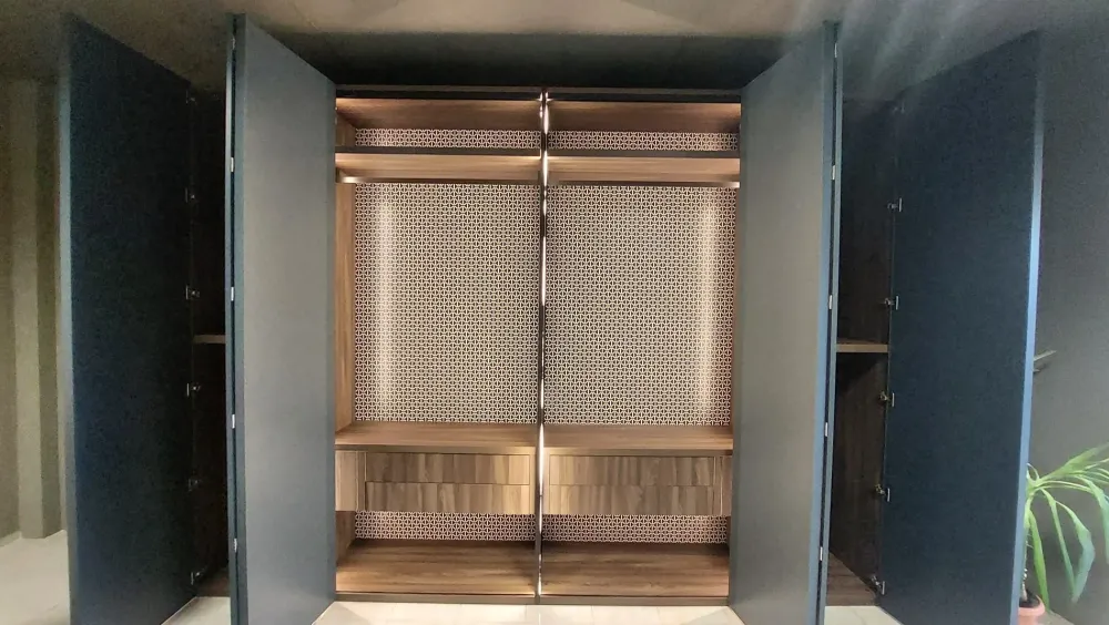 L’acquisto di un’armadiatura implica anche la valutazione del numero di ante: è possibile realizzare differenti versioni in base alle singole problematiche abitative. L’armadio System qui disponibile è uno dei nostri modelli a sei ante ma potrai richiedere soluzioni realizzabili su misura per te contattando i nostri store manager del settore arredamento.