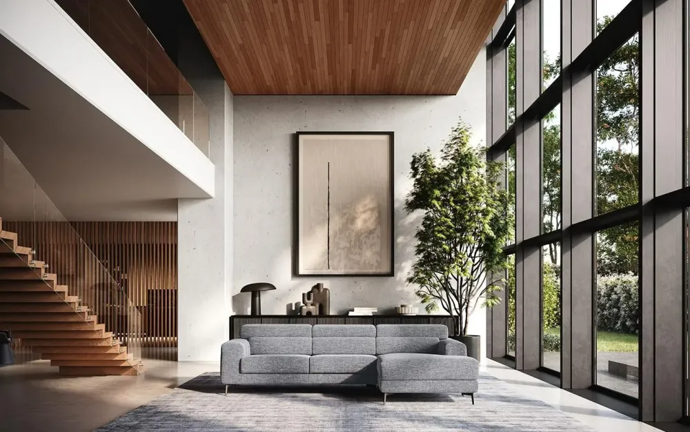 Con il fine di ottimizzare lo spazio nel living, è consigliabile scegliere gli arredi in base a conformazione e metratura delle stanze, valutando quindi anche il tipo di imbottito che fa per te tra divani, poltrone, divani letto e tanto altro; il modello visibile in foto fa parte della linea di con penisola di grande qualità firmati dal brand.