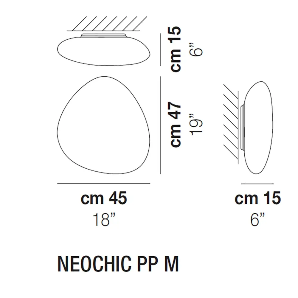 Neochic PPM della vetreria Vistosi è una plafoniera da soffitto o parete in vetro soffiato dalle curve morbide e la superfice levigata, che si incontrano per dare vita ad un modello di estrema semplicità e adattabile a qualsiasi contesto d’arredo. La sua particolare forma è un segno di straordinaria originalità e cura dei dettagli. Lampada da soffitto di grande luminosità diffusa ed omogenea.