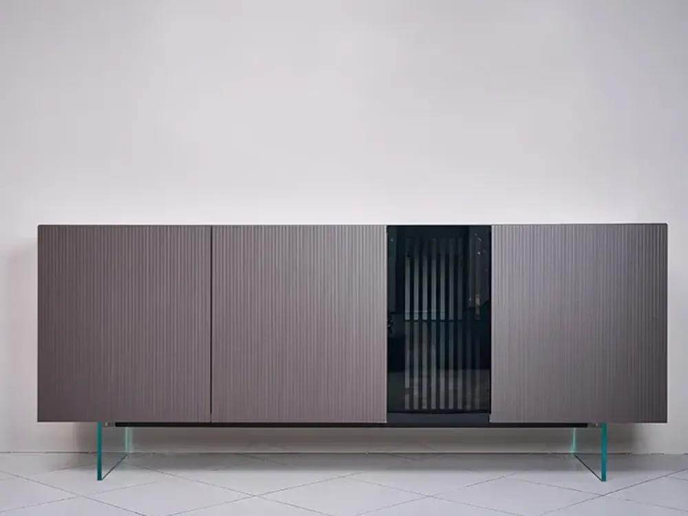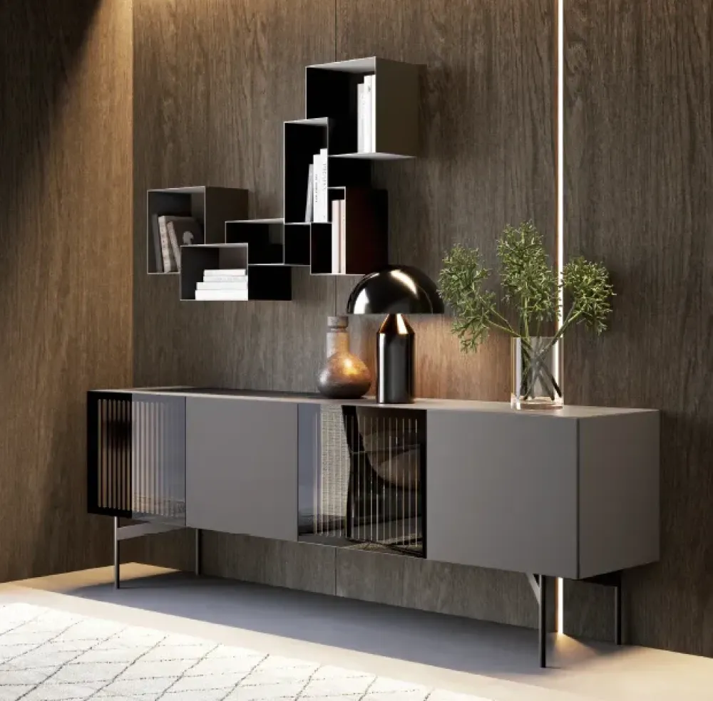 Le madie e i mobili per il soggiorno, come il modello Lucifer visibile in foto, sono essenziali sia dal punto di vista estetico che per quanto riguarda la funzionalità: potrai riporci libri, oggetti d’uso quotidiano o tipicamente decorativo. La madia in laccato opaco nella fotografia unisce le doti di praticità e design del locale dando vita a un concept d’arredo design.