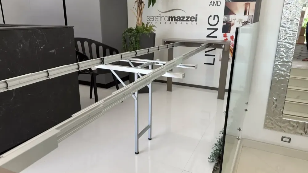 DIMENSIONI: 80 x 50 cm da chiusa, allungabile fino a 300 x 80 cm, con sostegno centrale.