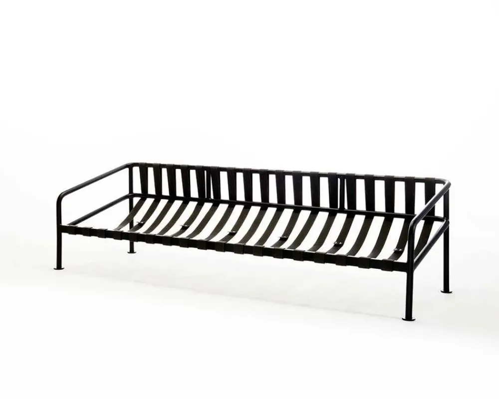 Struttura portante in acciaio verniciato colore nero o rosso opaco RAL 3004 dotata di nastri rigidi in poliestere colore antracite per il supporto dei cuscini.