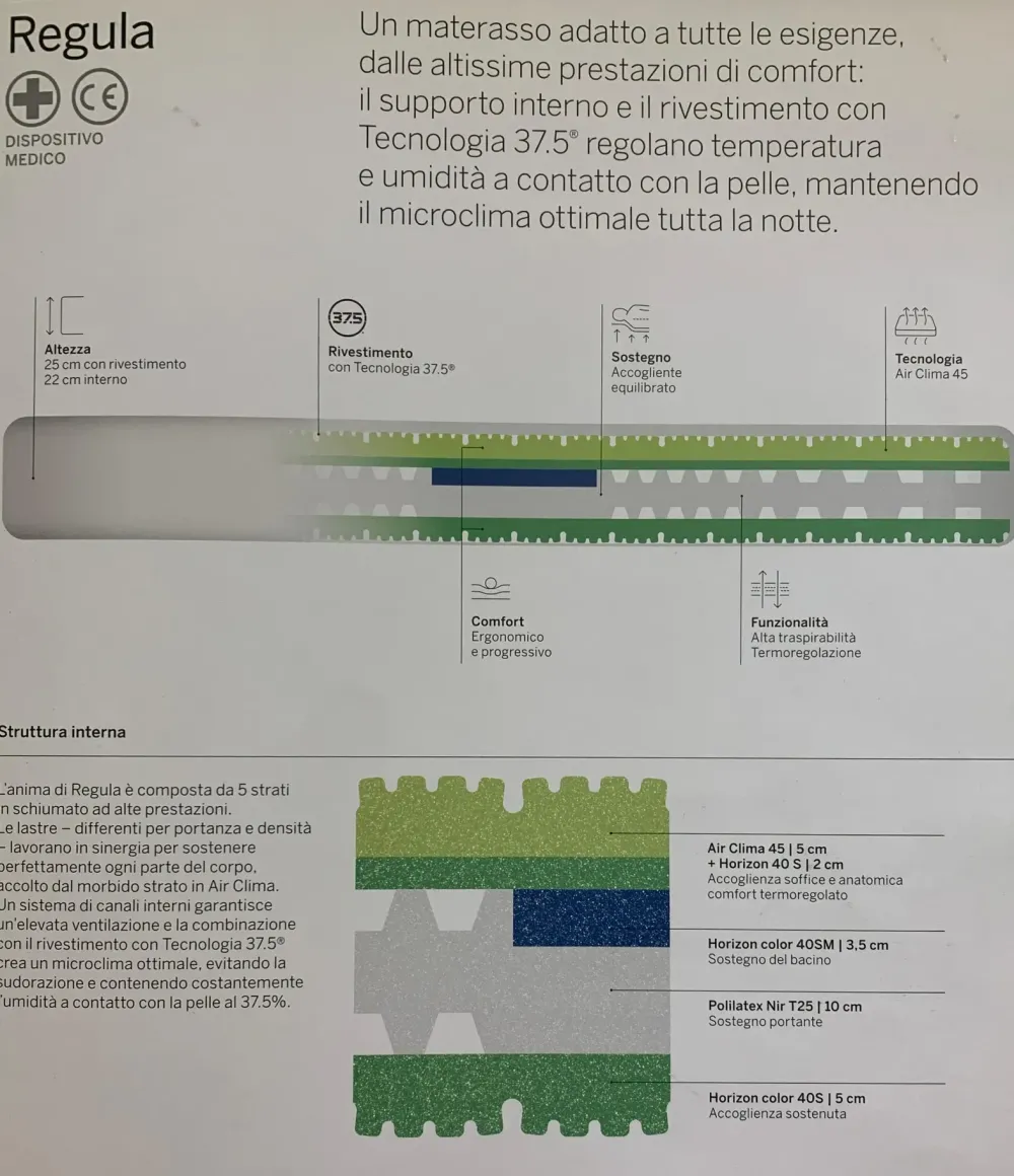Il rivestimento Regula 37.5 contiene particelle attive costituite da sabbia vulcanica, che mantengono asciutta la zona di contatto corpo-materasso, riducendo le interruzioni del sonno.