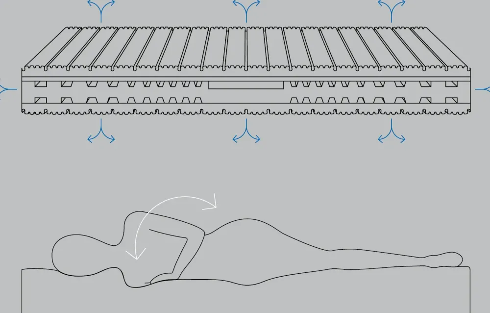 Il rivestimento Regula 37.5 contiene particelle attive costituite da sabbia vulcanica, che mantengono asciutta la zona di contatto corpo-materasso, riducendo le interruzioni del sonno.