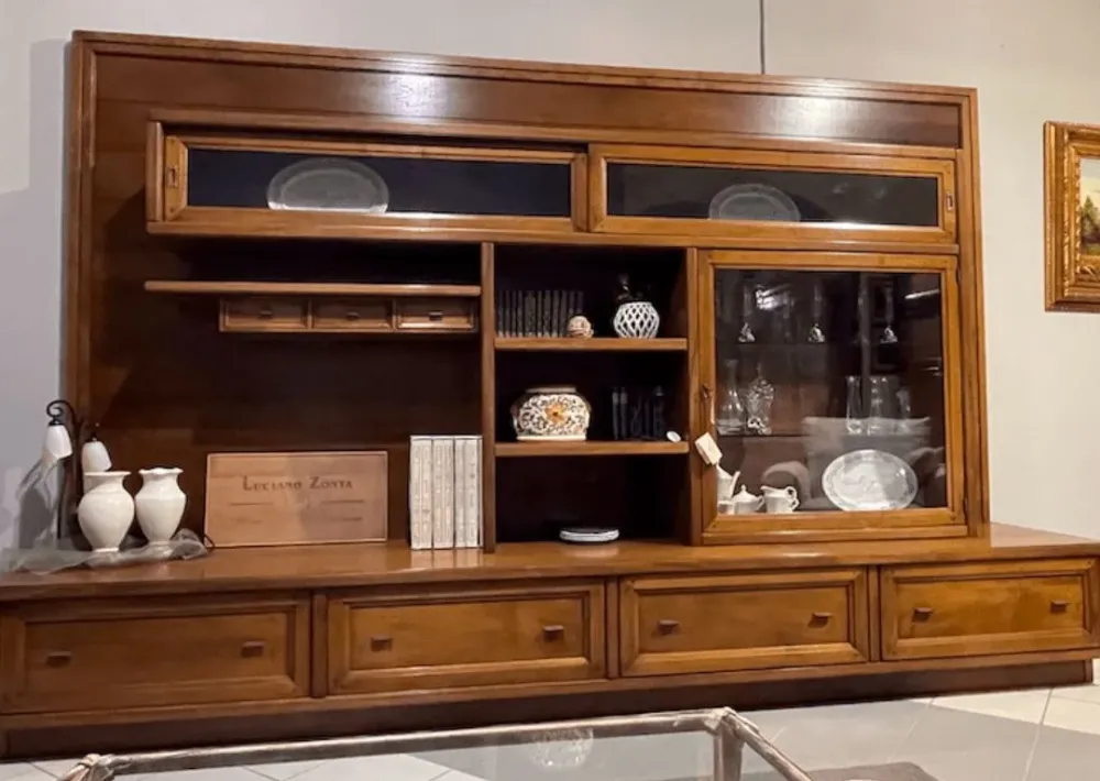 I mobili non devono mai essere ingombranti nel living, per questo motivo è così rilevante valutare attentamente anche le misure: il modello mostrato in foto ha una larghezza che va da 301 a 350 cm. I mobili e complementi per la zona giorno consentono di customizzare lo spazio creando particolari atmosfere: se vuoi un soggiorno classici, la parete attrezzata nell’immagine è l’ideale. Il modello protagonista di quest’offerta davvero vantaggiosa è realizzato in legno: la robustezza e la modularità strutturale si fondono alla perfezione con il valore estetico della finitura più idonea. Questa soluzione è appartenente alla nostra serie di mobili e complementi con maniglia del noto e rinomato brand Zonta. Se vuoi valorizzare la zona giorno con un mobile a terra, scopri questa parete attrezzata scontata: saprà rendere lo spazio pratico e operativo senza risultare d’intralcio. Questa composizione di ottima fattura a prezzo scontato è un’imperdibile occasione: trasporto incluso entro 100 Km per questa soluzione.