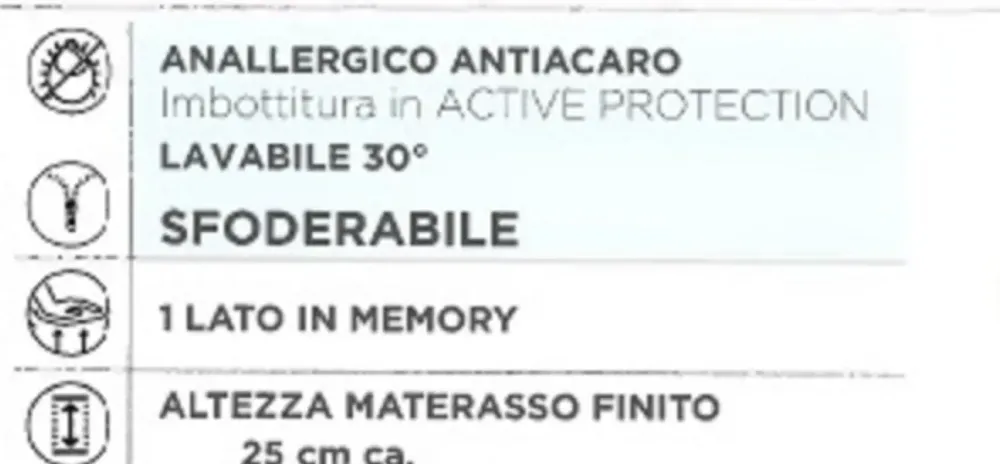 Scheda tecnica materasso Thinkbed mod.chic sostenuto h.25 Zr